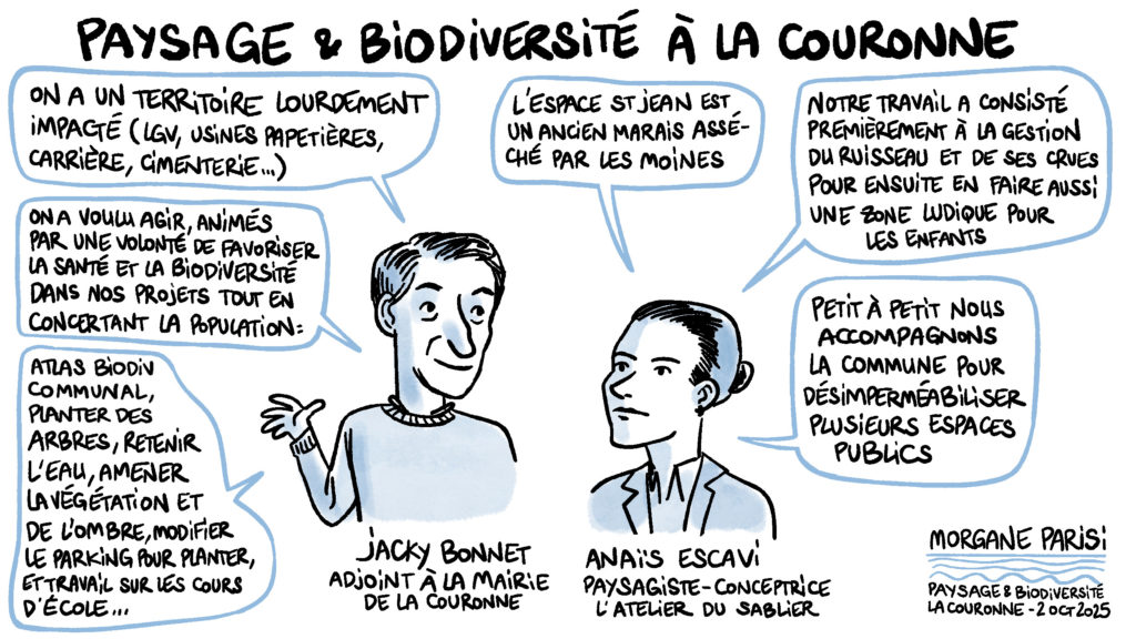 Paysage et biodiversité à La Couronne par Jacky BONNET,adjoint en charge du plan d’actions de résilience et d’adaptation de la ville au changement climatique– Mairie de La Couronne et Anaïs ESCAVI, paysagiste-conceptrice – L’atelier du sablier